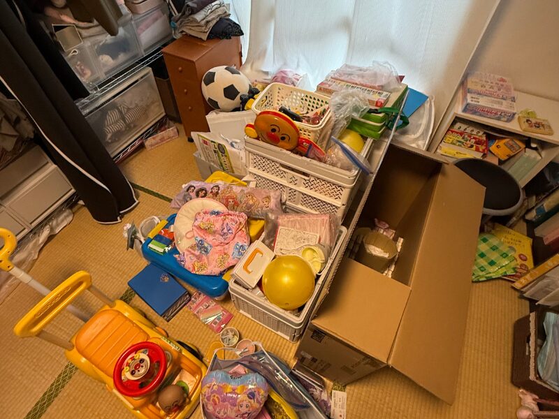 お子さんのおもちゃ・絵本などの置き場所が決まってない状況でしたね。